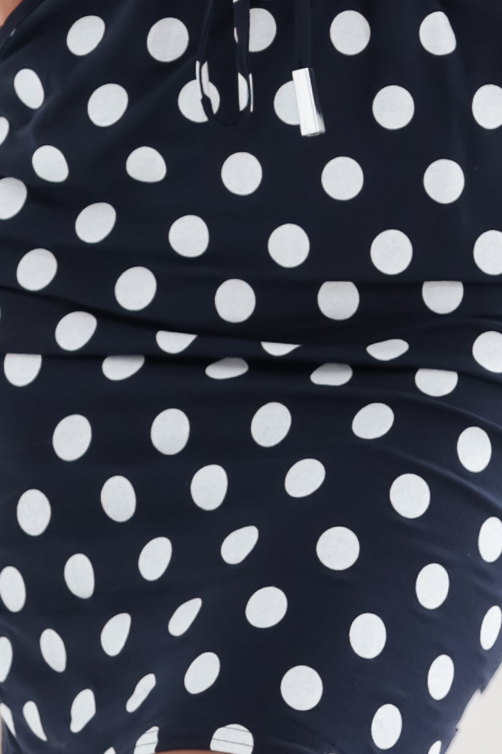 13-167 Sukienka sportowa z wiązaniem i kieszonkami - granat w białe grochy