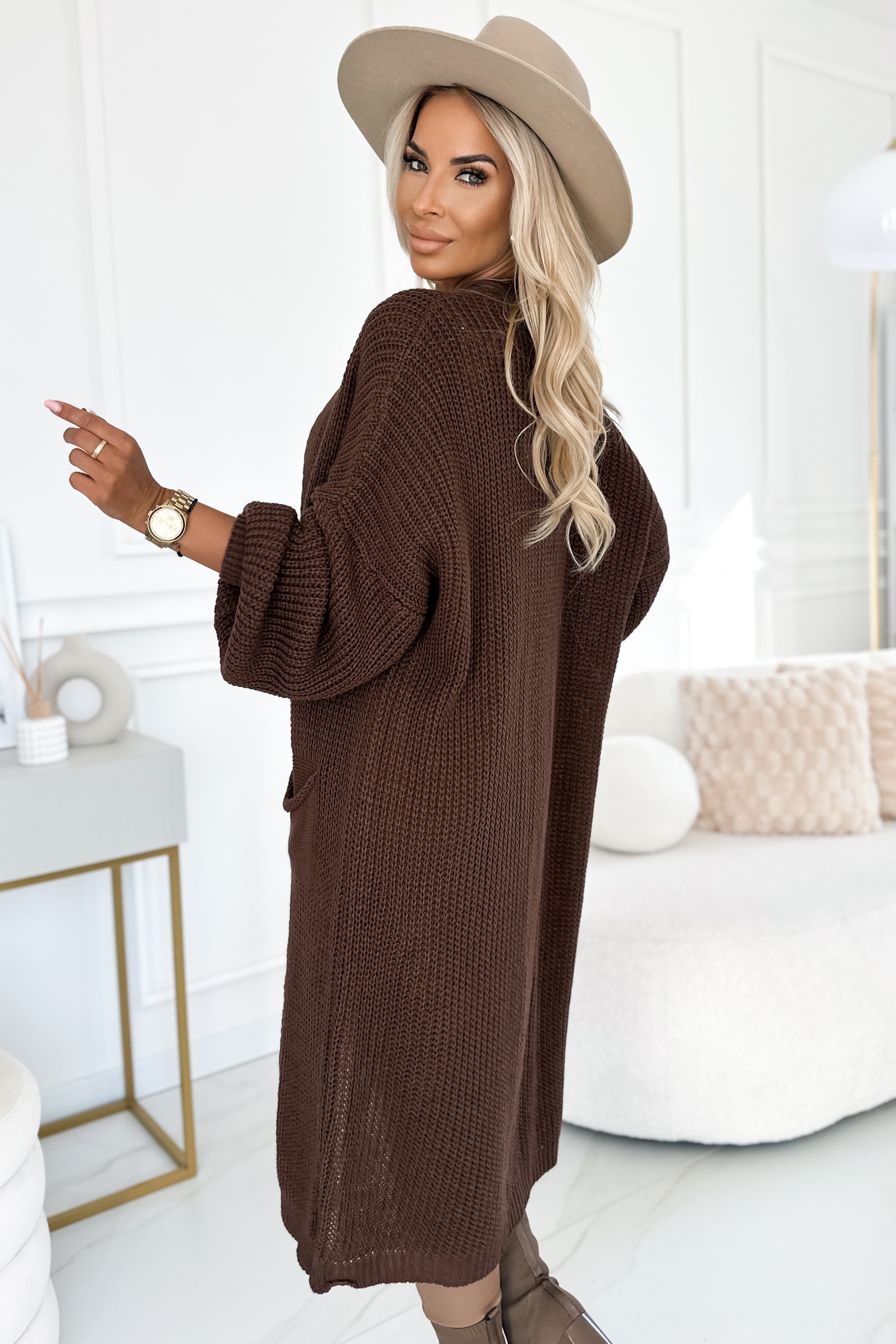 Długi kardigan z kieszeniami – czekoladowy | Numoco Basic